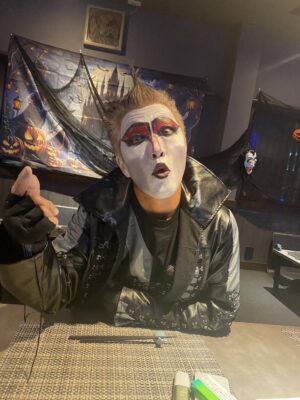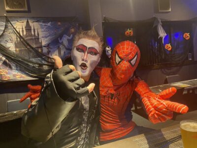 吸血鬼メイクに身を包んだスタッフとスパイダーマンの異色コンビ🕷️